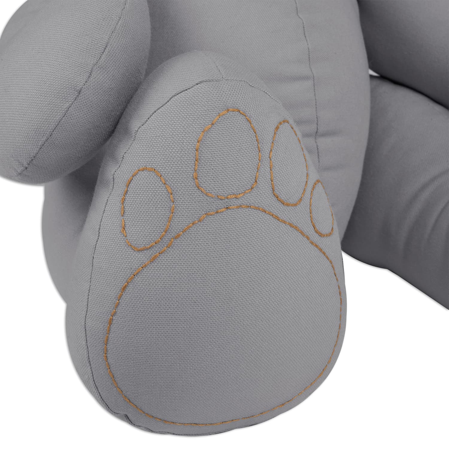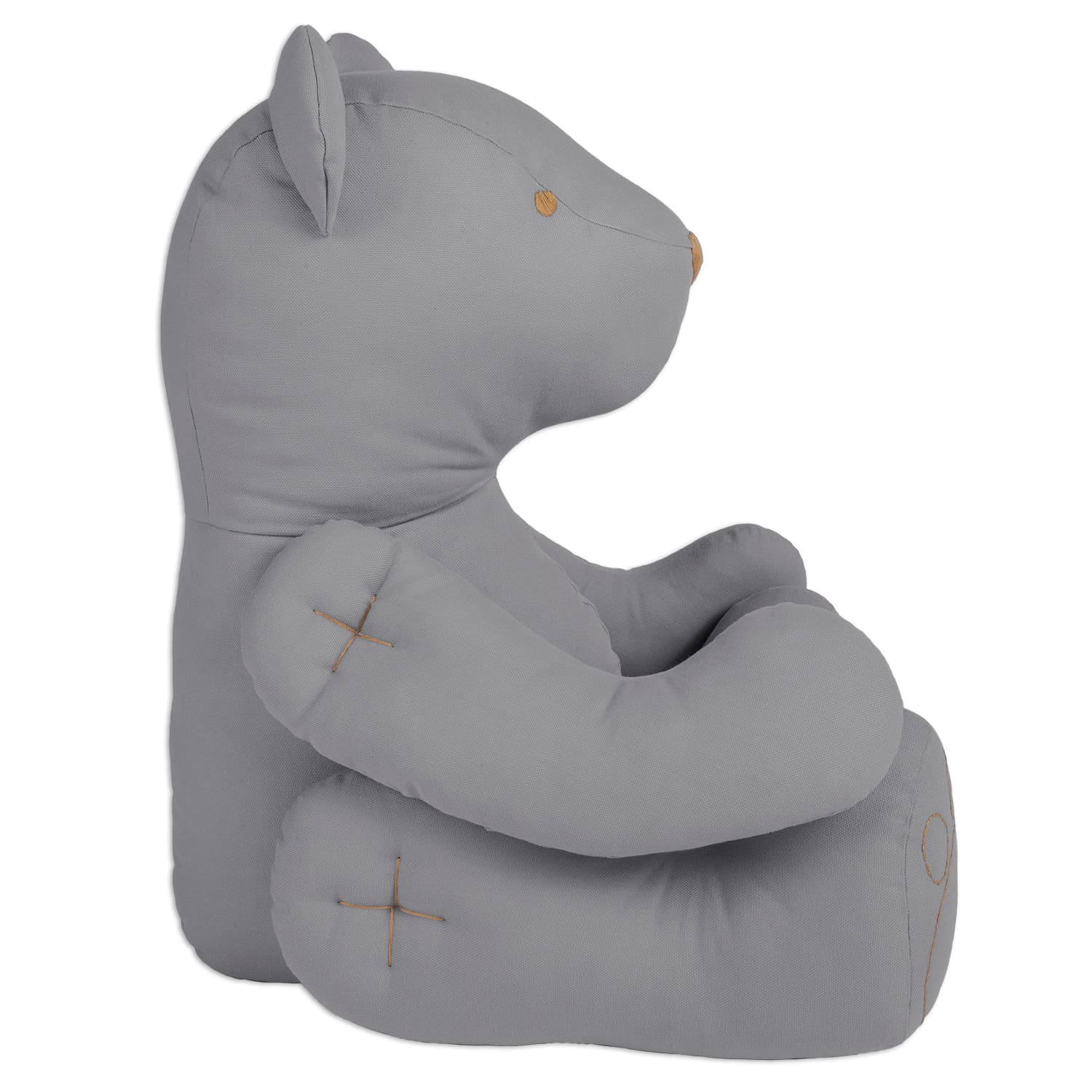 Teddy bear shaped cushion with embroidered details.