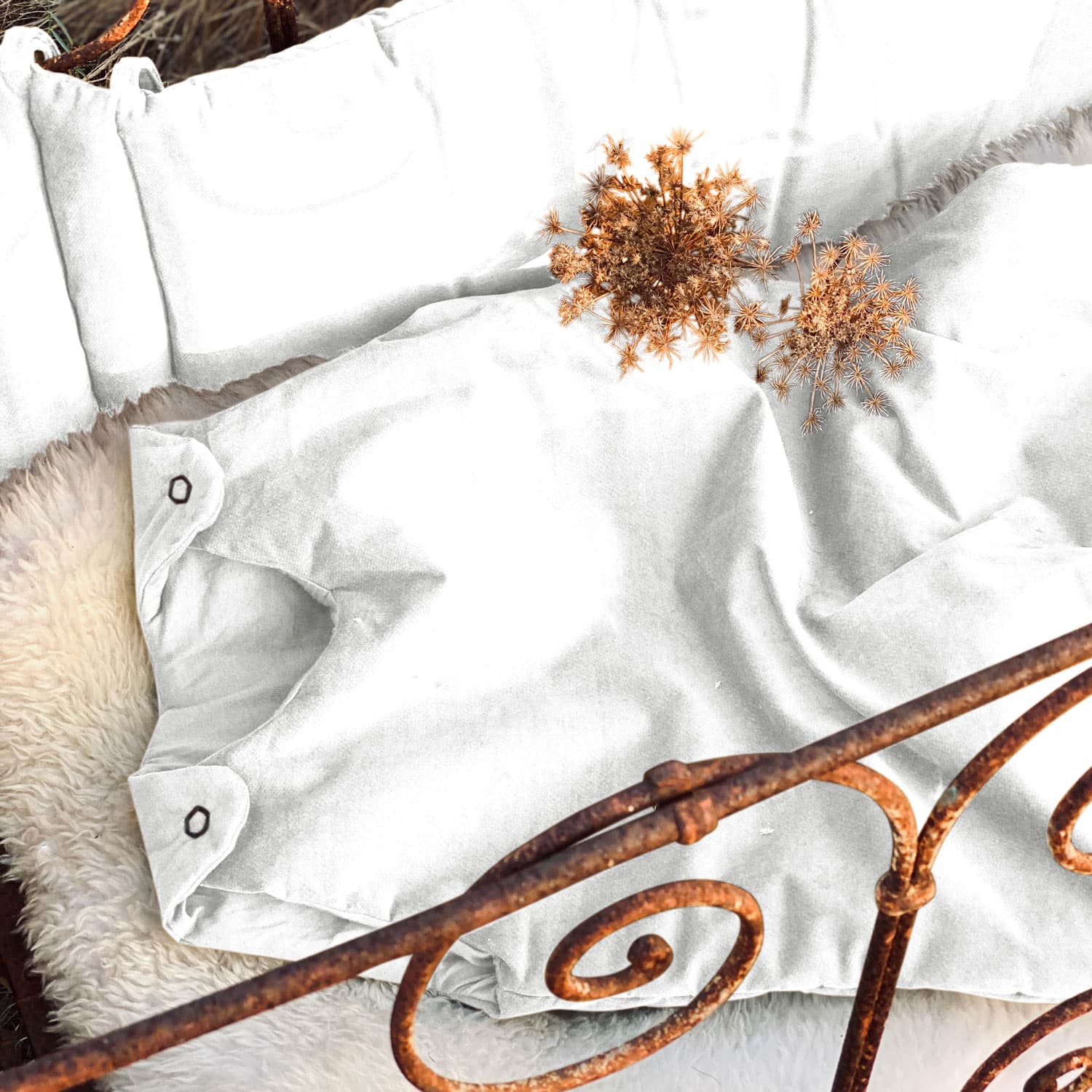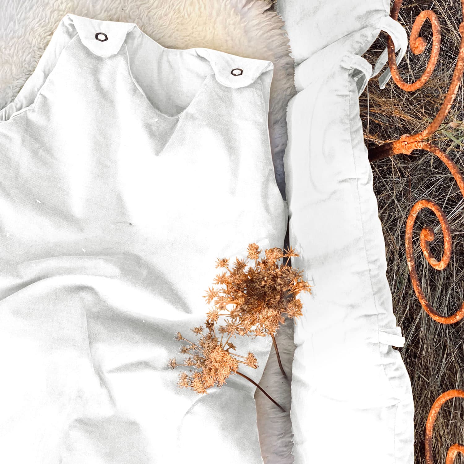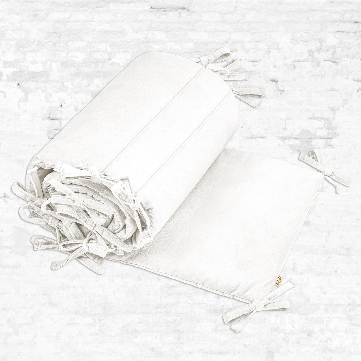Padded cot bumper. Can be adjusted to the bed with ties.