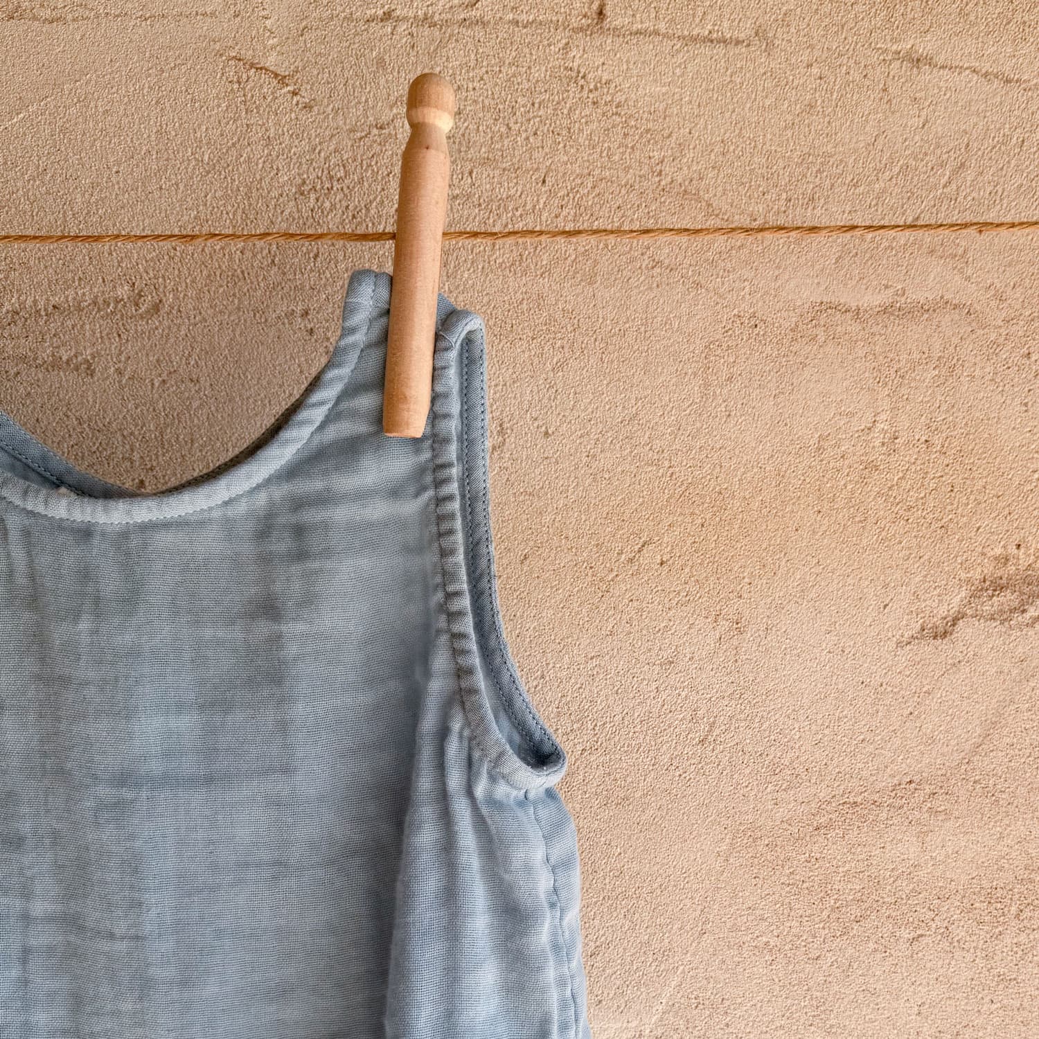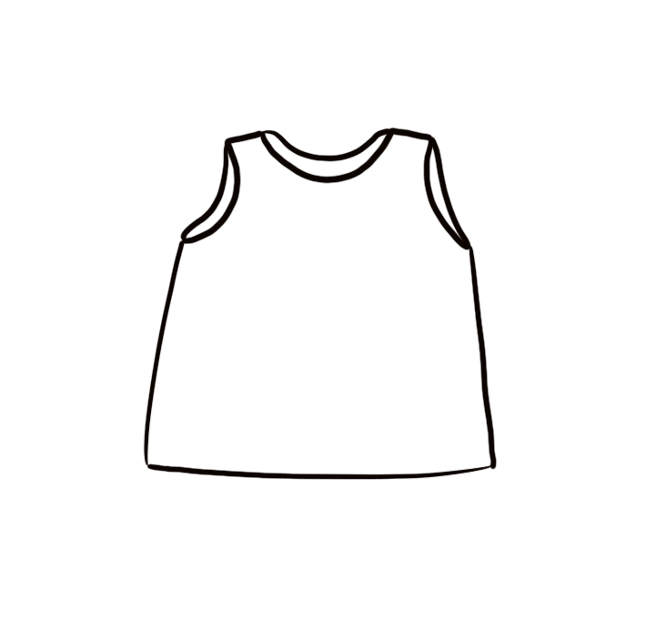 Sleeveless shirt. Back opening with four mother-of-pearl buttons.