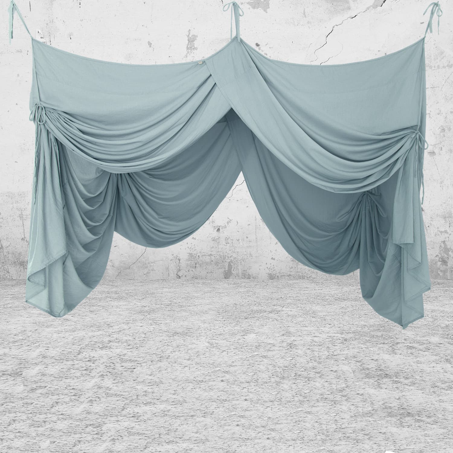 Canopy bed drape, for single beds, with four openings. 6-point hanging system with ties. Drape opening system with ties.