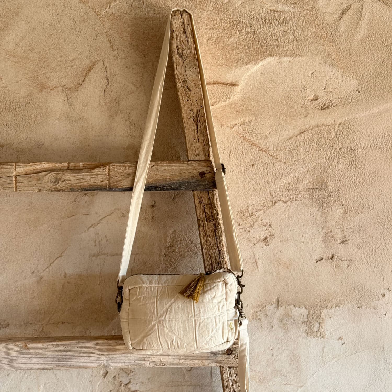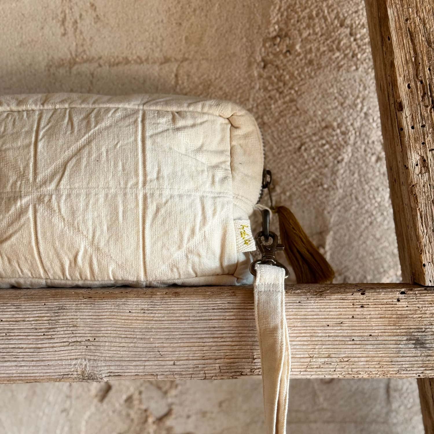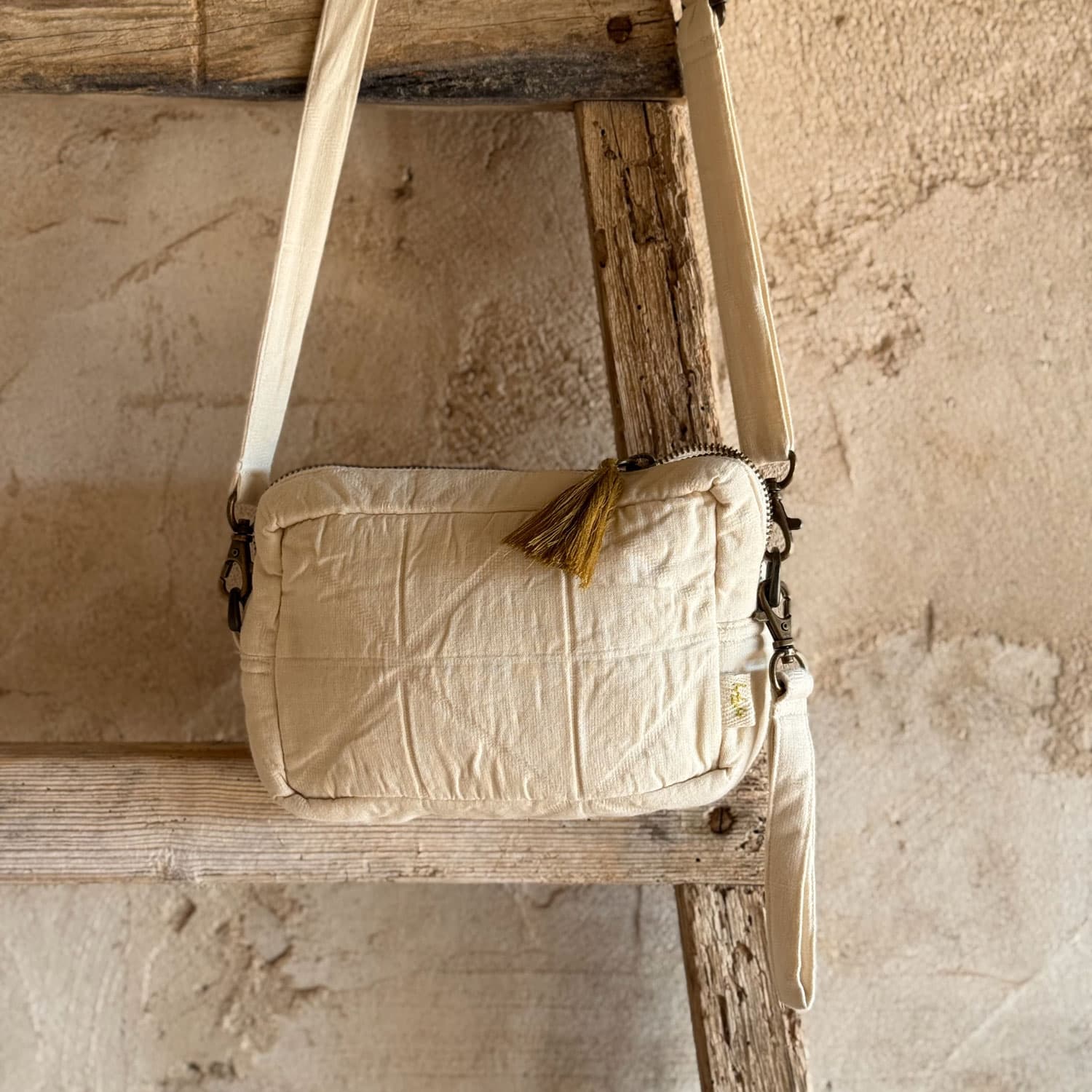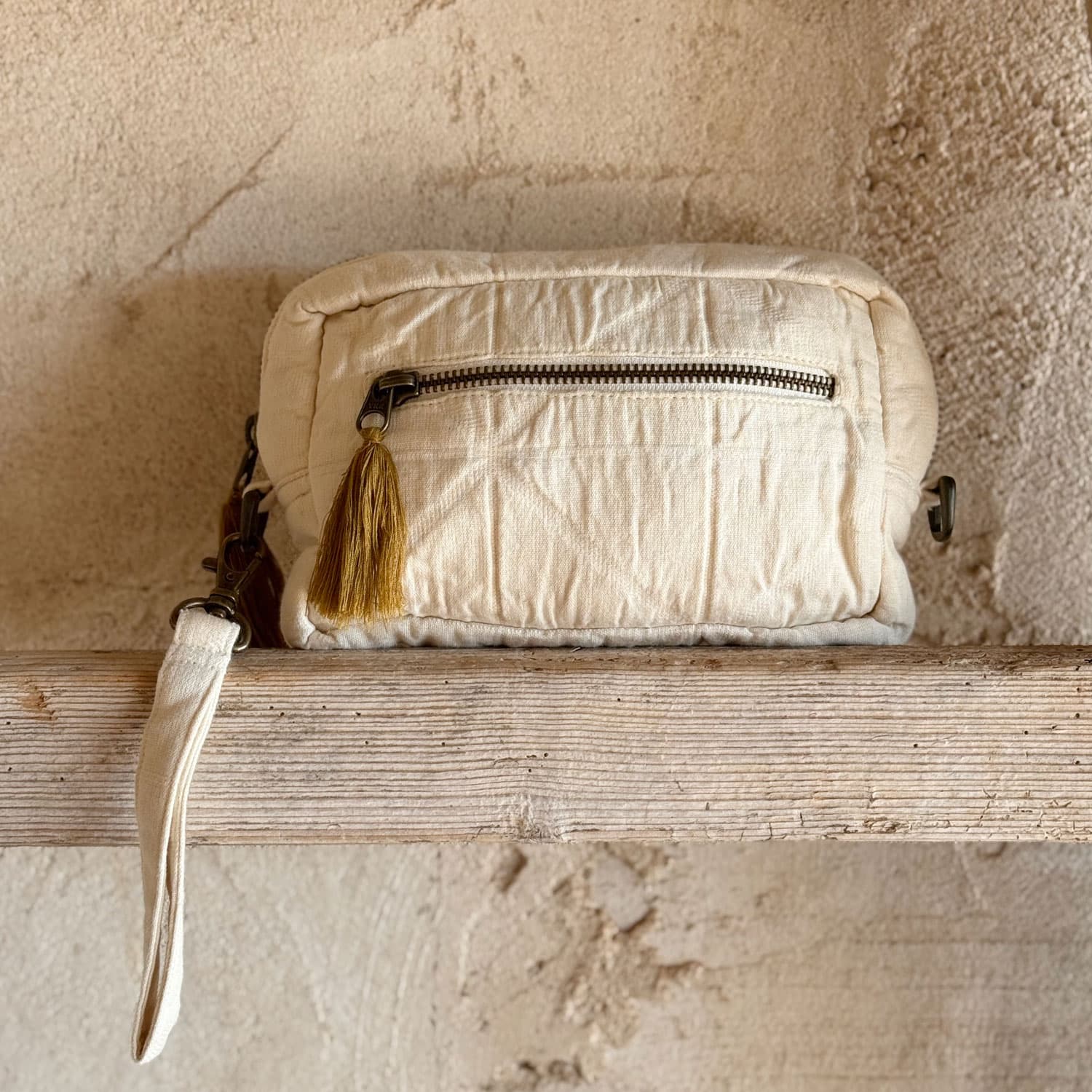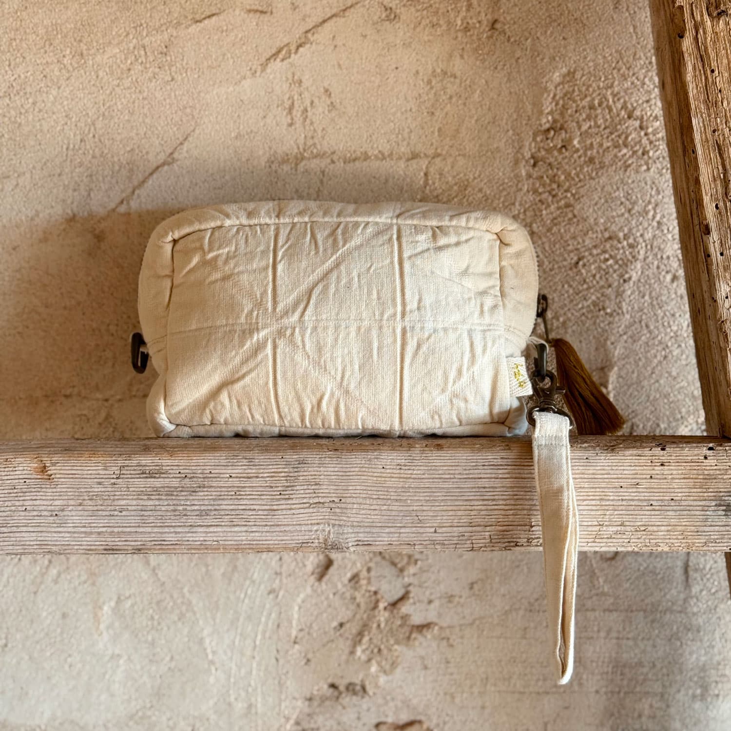 Multi-purpose Bag made of quilted cotton. One removable & adjustable clip-on shoulder strap. One side removable handle. Hand or shoulder carry.