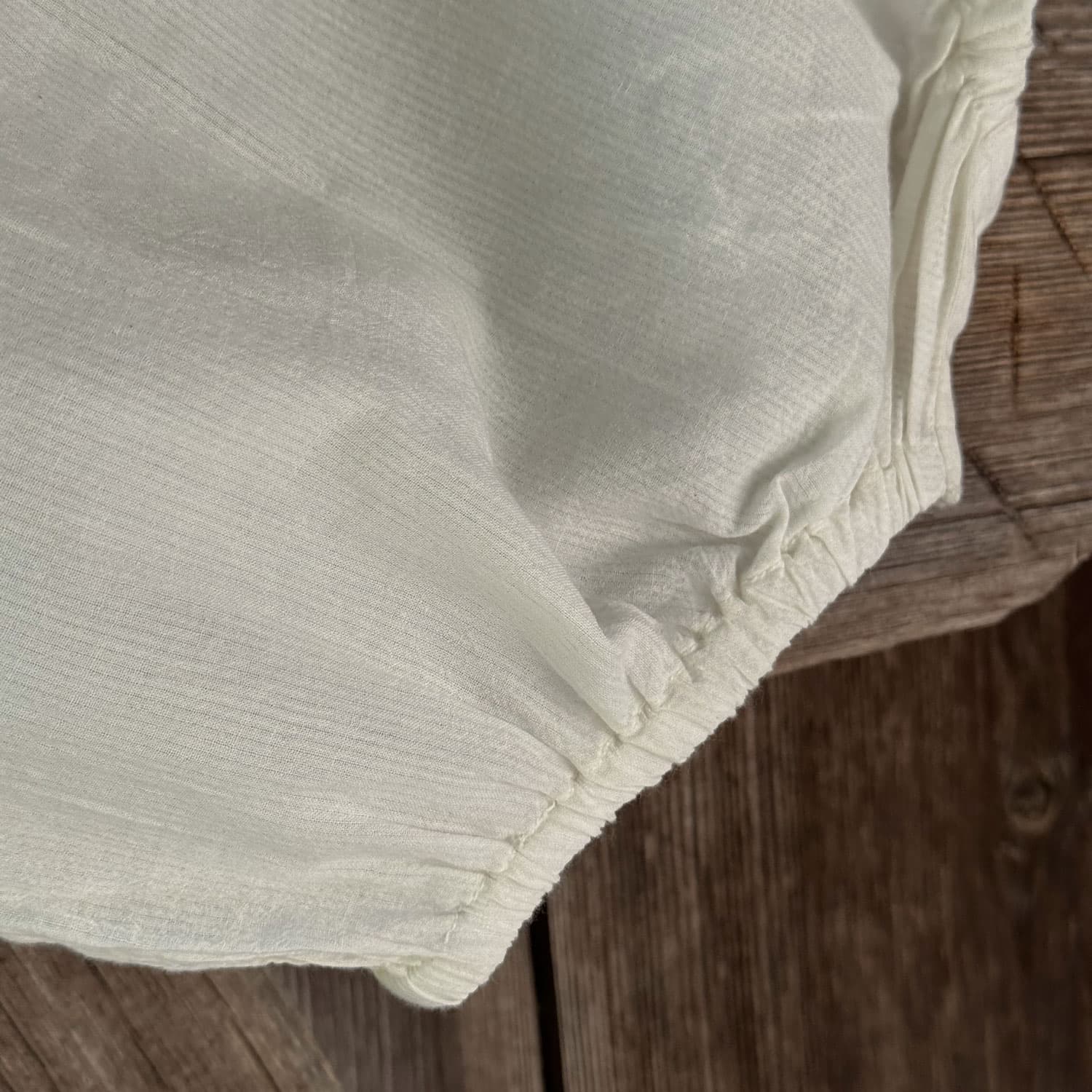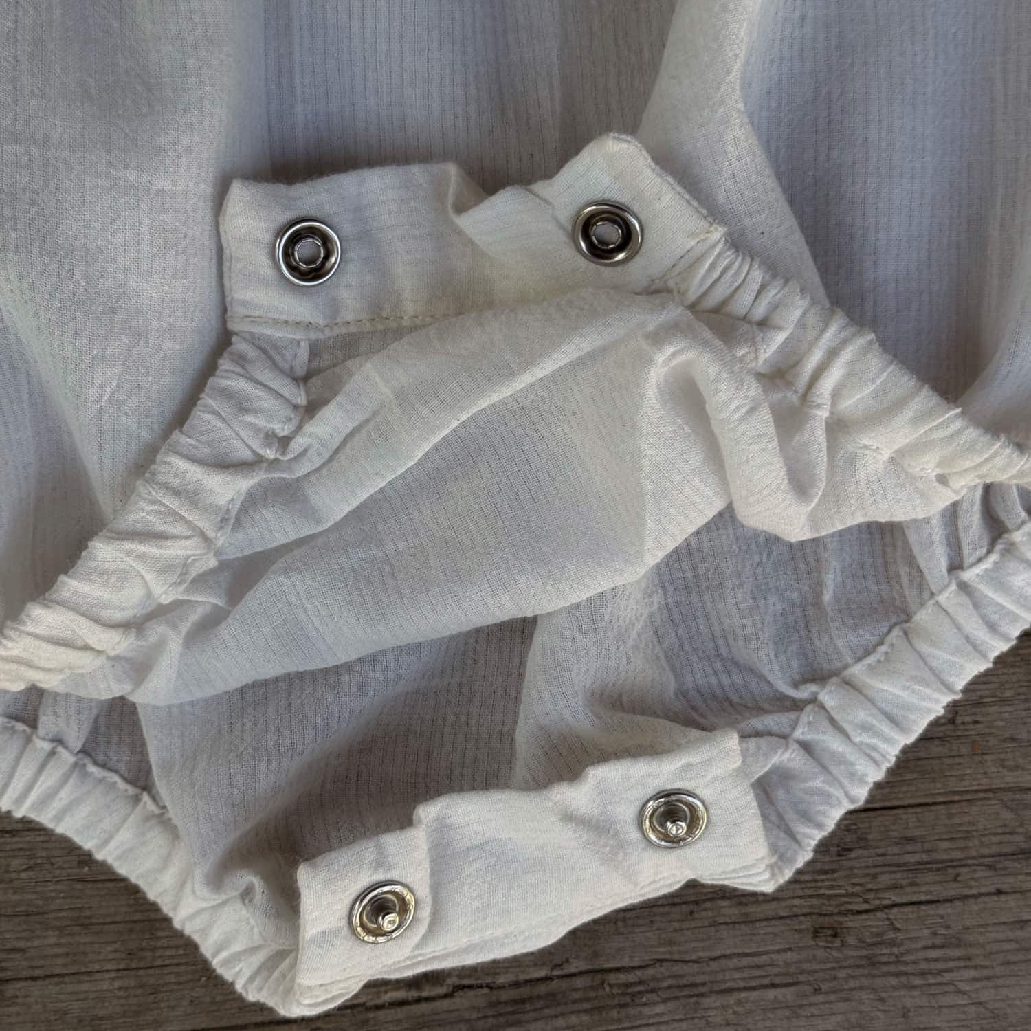 Baby Bodysuit with back opening with a mother-of-pearl button. Crotch opening.