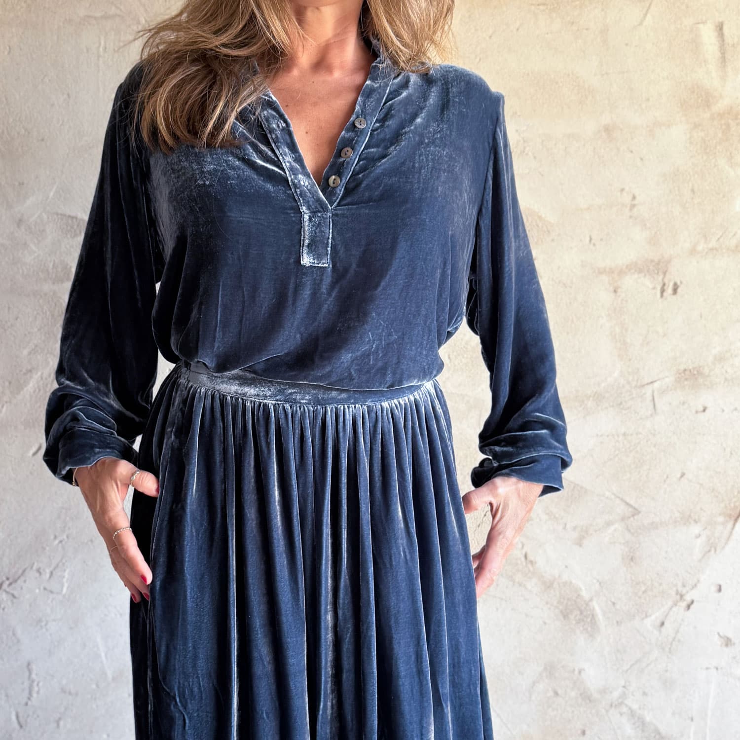 Long Skirt, with elasticated waist. Two pockets.