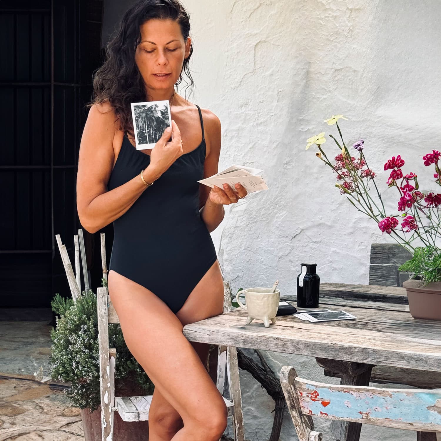 One-piece swimsuit with thin shoulder straps, made of double-layered Sensitive® Elastane, a premium quality, breathable, light, comfortable and resistant fabric.