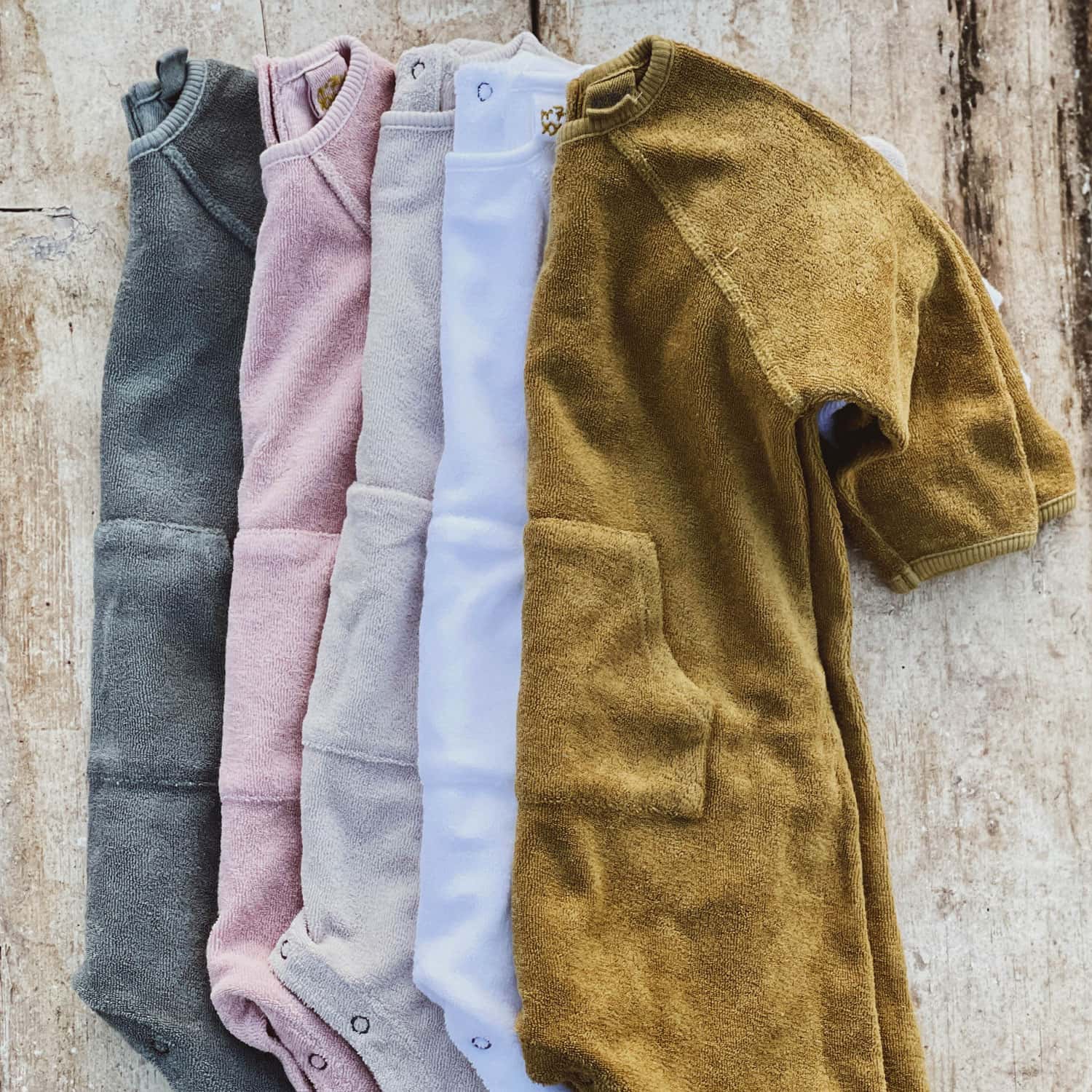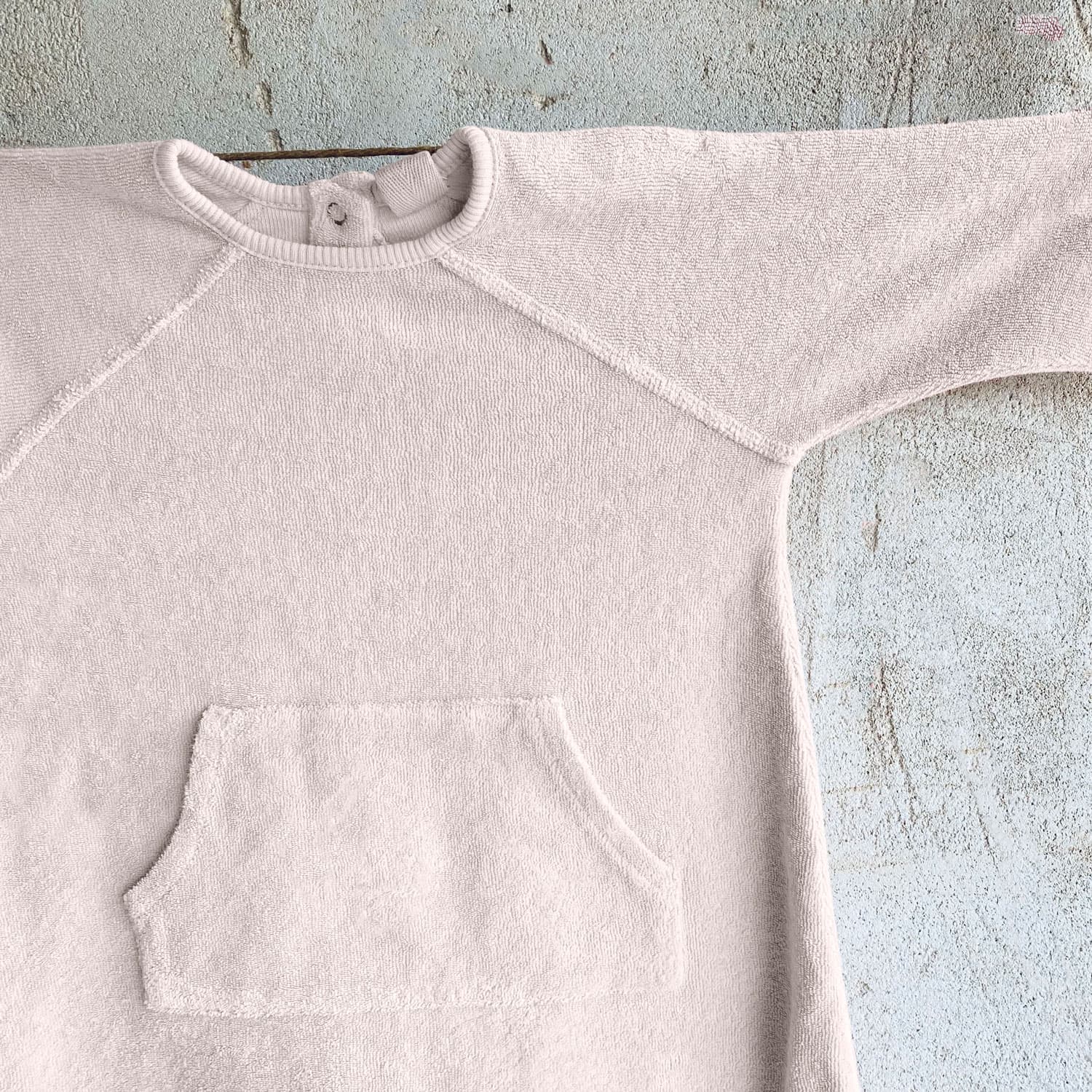 Long sleeve jumpsuit made of soft organic cotton sponge, with a kangaroo pocket, snap button on the back neckline and crotch opening with hidden snap fasteners.