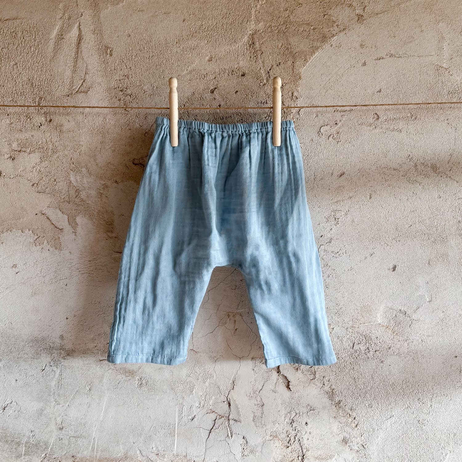 Harem style trousers for babies with elasticated waist. This unisex style is suitable for both baby girls and boys.