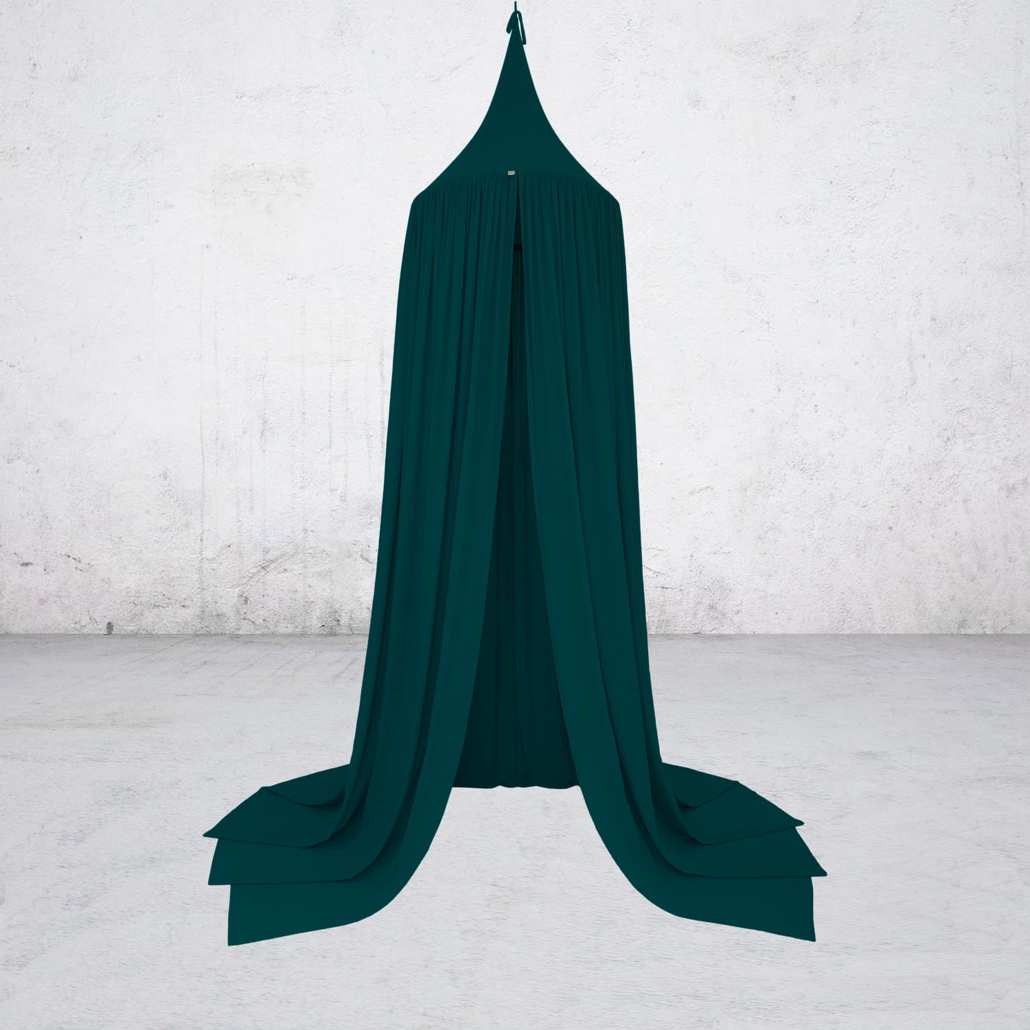Canopy with hanging ribbon. Removable metal ring structure, secured on the inside with ties. Easy set-up with a ceiling hook or wall bracket (not included).