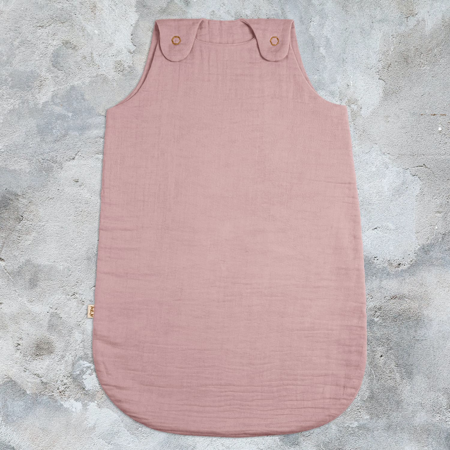 Lightweight baby sleeping bag (TOG 0.5). Zipped opening on the side. Two snap fasteners on the shoulders.