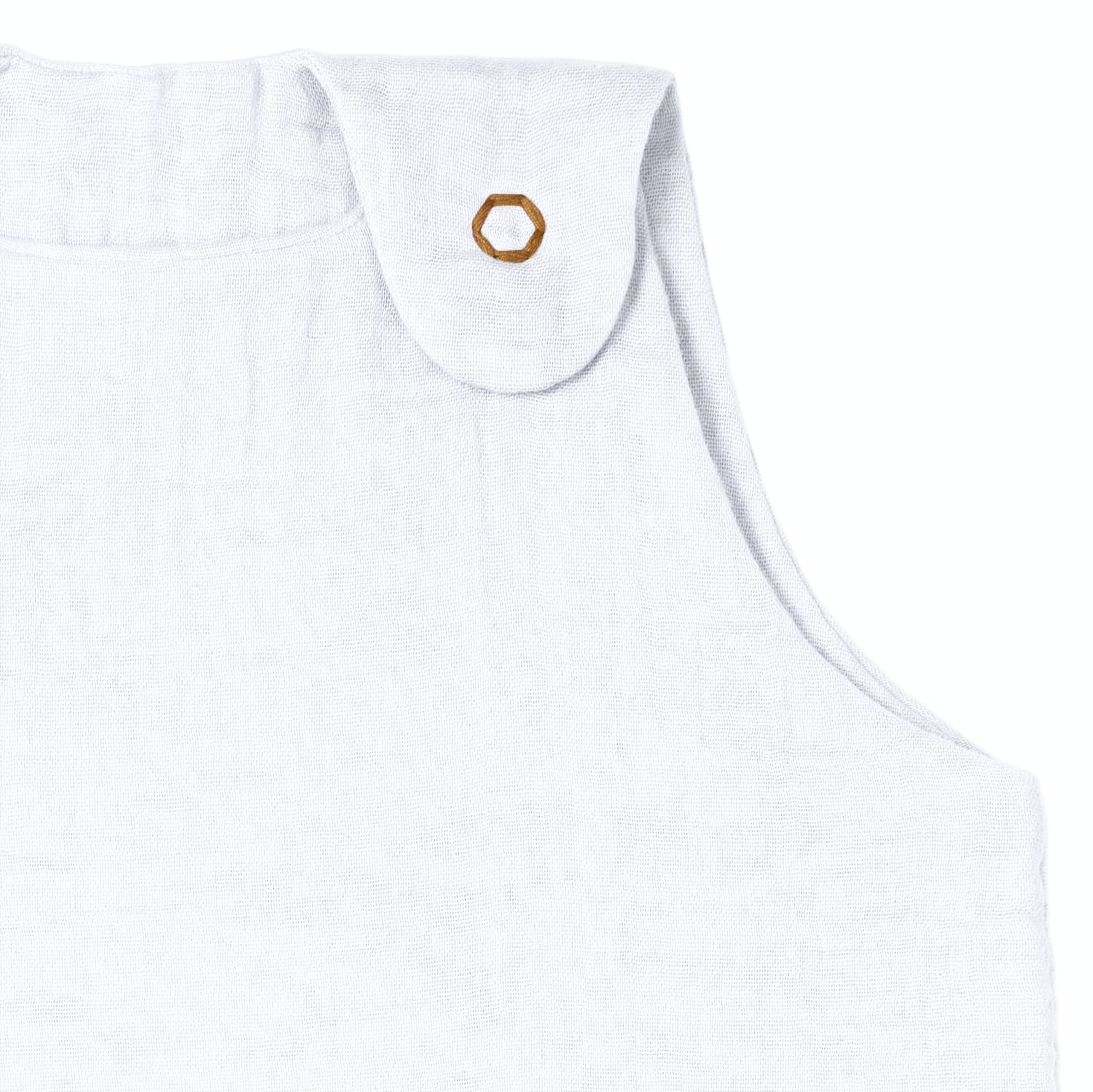 Lightweight baby sleeping bag (TOG 0.5). Zipped opening on the side. Two snap fasteners on the shoulders.