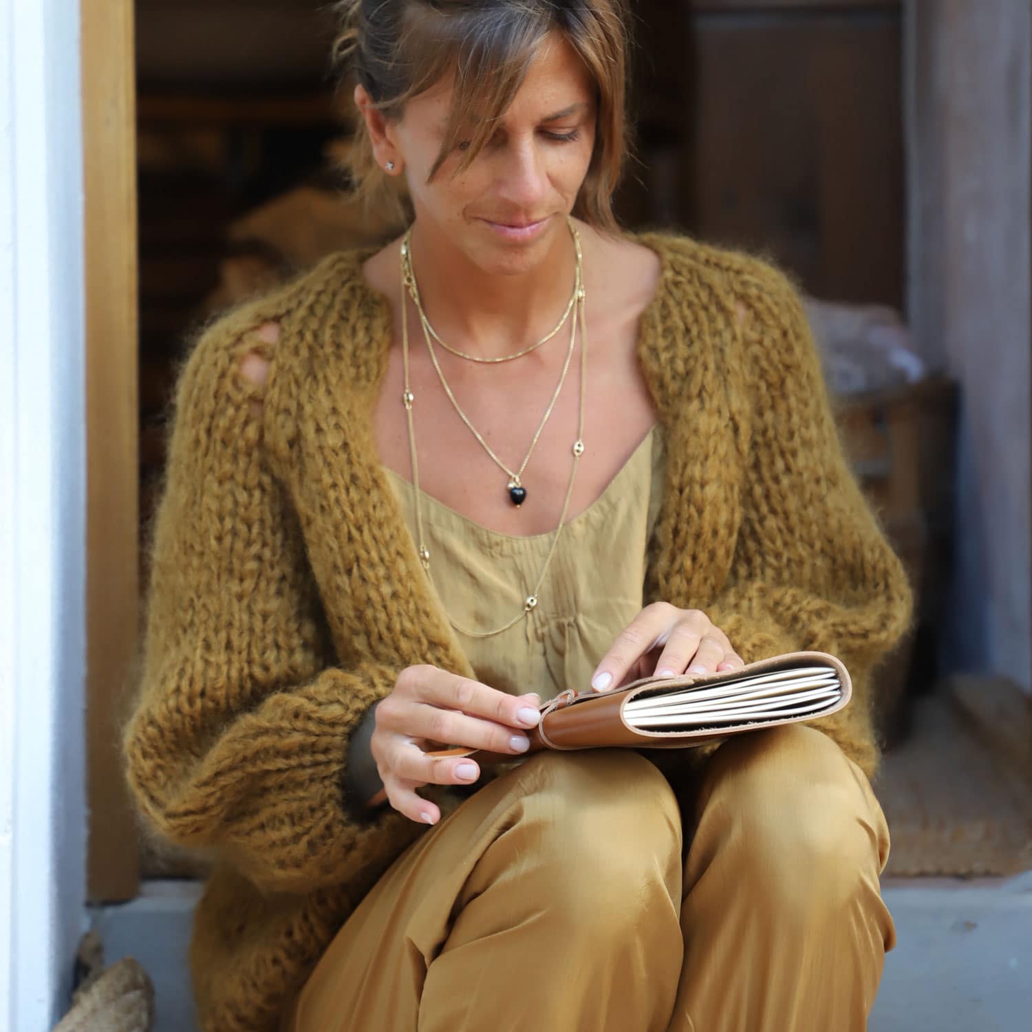 Mohair Wool Cardigan with round neck and ¾ sleeves, an open version of our Atelier Sweater.